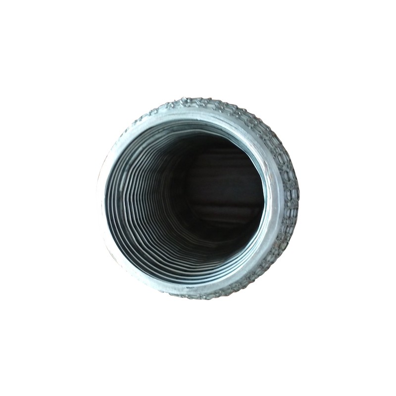 Flexible ondulé grillagé 304L femelle diamètre intérieur 54mm pour tube diamètre extérieur 53mm longueur 152mm, le tube rentre dans le flexible et on vient souder le bord du flexible sur le rayon du tube.